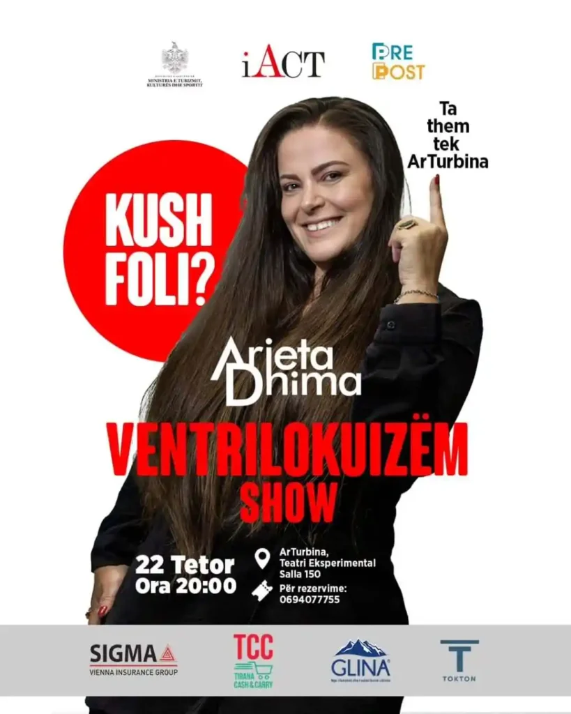 Arjeta na tregoi për shfaqjen e saj më të re, “Kush Foli?”, që do të mbahet më 22 tetor në ArtTurbina. Një mbrëmje ku publiku nuk do të jetë thjesht spektator, por pjesë e historisë që ndodh në skenë. Ajo zbuloi se do të ngjiten në skenë pesë personazhe kukulla, secili me personalitetin e vet të spikatur, duke krijuar një atmosferë plot humor, energji dhe reflektim.