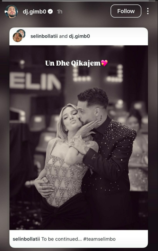 “Vazhdon…”, ka shkruar së fundmi Gimbo në një postim që ndezi rrjetin dhe u interpretua menjëherë si konfirmim se historia me Selinin po vijon edhe pas Big Brother VIP Albania.